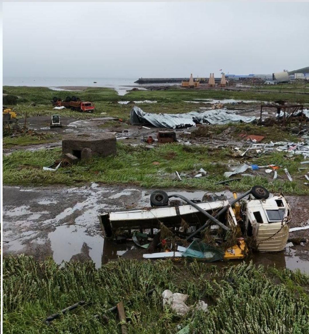 Северо-Курильск 30 июля 2025 г.. Обрушившаяся волна цунами нанесла серьёзный урон портовой инфраструктуре и рыбоперерабатывающим предприятиям: выбросила на мель и сушу суда, разбросала контейнеры, повредила помещения, перевернула спецтехнику и огромный резервуар под топливо.